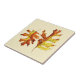 Carrelage de feuilles d'automne avec encre et aquarelle illustration représentant deux feuilles de chêne jaune brun. L'un des feuilles a un côté en cailloux qui ressemble à une main qu'il donne à son partenaire de danse. Cette mosaïque d'amoureux de la nature a un arrière - plan personnalisable.