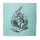 Un design d'art Alice vintage au pays des merveilles avec une illustration de lapin blanc antique sur un arrière - plan turquoise en papier gélifié.