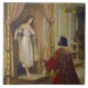 Ce dessin présente un tableau de l'artiste anglais Edmund Blair Leighton (1852-1922). Il montre un roi agenouillé dans un grand palais en offrant sa couronne à une pauvre mendiante. Le roi porte une robe rouge avec un motif doré élaboré. La mendiante porte des vêtements simples et ses pieds sont nus. Elle se tient devant le trône du roi. Le roi lui-même offre sa couronne à la fille. Il évoque le classique trope de drap-to-fortune, qui montre que même un roi peut se sentir impuissant face à la beauté naturelle d'une femme pauvre. Le titre original du tableau est "Le Roi et la Servante Mendiante", et il a été peint par Edmund Blair Leighton en 1898.