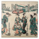 On y voit plusieurs femmes et divers éléments architecturaux au poste de Fukagawa sur la route Tokaido. Impression japonaise Vintage