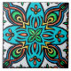 Tuile espagnole décorative avec les éléments colorés dans la turquoise, le vert, le jaune et l'orange. Conception symétrique avec les éléments floraux et de feuille.