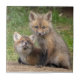 Deux renardeaux partagent un moment juste à l'extérieur de leur tanière.