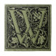 Lettre décorative de charme W monogramme initial. Typographie de style calligraphie. Première lettre en noir de William Morris au sujet d'une vintage doublure de livres vintages verts à l'avocat avec des feuilles blancs de Ginkgo biloba.