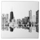 Cette oeuvre présente la ville de Chicago, Illinois à l'encre noire avec un reflet ci-dessous. Excellent cadre ou utilisation dans un projet de décoration.