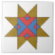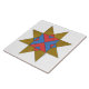 Ce dessin d’une auseklis (symbole du ciel associé aux étoiles et à la lumière) aux couleurs médiévales de vermillon, d’azur et d’or, est basé sur une marque de sorcière (signe de protection ou marque apotropique) gravée dans le bloc stable de Belton dans le Lincolnshire, bien qu’il soit plus typiquement un symbole letton.