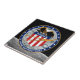 Apollo 16 était la cinquième mission du programme spatial Apollo des États-Unis pour débarquer des hommes sur la lune et les ramener sur Terre, en commençant le 16 avril 1972 avec les astronautes John Young, Thomas Mattingly et Charles Duke Jr. et en atterrissant 11 jours plus tard. Le patch d'équipage Apollo 16 est dominé par un aigle perché au sommet d'un bouclier rouge, blanc et bleu avec une feuille d'air dorée superposée sur une scène lunaire et entouré d'un cercle bleu de 16 étoiles.