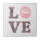 Ce design présente un ensemble de lèvres pastel et de LOVE dans un motif rayé noir et blanc.