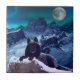 Un carrelage gothique en céramique avec un loup noir d'une beauté effroyable entouré de montagnes enneigées sous un feu de lune, le ciel aurora borealis. OEuvre numérique de moi 🖤 Utilisez le menu à droite pour éditer et choisir parmi une gamme de tailles différentes.
