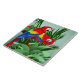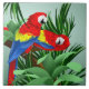 Art perroquet rouge avec une paire de macaws Scarlet sur une branche parmi les feuilles de palmiers tropicaux verts