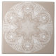 Ce mandala blanc se repose sur un arrière - plan brun clair ou bronzage. La couleur est douce et naturelle. Dans quelques lumières elle peut ressembler à un gris chaud. Une partie de la collection de mandala de Howlsplann.