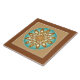 Carreaux de céramique en mandala motif en douze points dans les tons chocolat clair, bronzé et crème avec un arrière - plan turquoise ombragé, encadré de bronzage et de chocolat