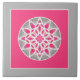Carrelage en céramique dans un mandala motif en douze points dans les tons rose fuchsia, blanc et gris doux
