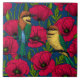 Les mangeurs d'abeilles et les pavots dessinés et colorés dans Illustrator, motif transparent.