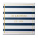 Ce carrelage en céramique personnalisée ferait un grand ajout à votre nouvelle maison. Avec un design classique à rayures nautiques et un accent de bordure dorée. Personnalisez avec votre nom et votre date de mariage en utilisant le modèle texte facile à utiliser. Trouvez des produits correspondants dans ma collection de Mariages de bandes nautiques.