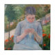 Carreau Mary Cassatt - Fille couture dans un jardin