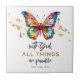 Un beau papillon aquarelle aux accents or et Matthieu 19:26 verset bible "Avec Dieu, tout est possible" céramique
