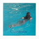 Modèle femelle aux cheveux noirs nageant dans une belle mer bleue à customiser, personnalisez en changeant de nom