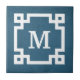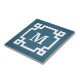Design de monogramme avec décoration de bordure clé grecque sur arrière - plan bleu grunge