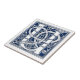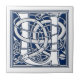 Une belle lettre céleste en relief décoratif illuminée de têtes de dragon gris sur un arrière - plan bleu foncé velouté.