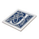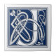 Une belle lettre céleste en relief décoratif illuminée de têtes de dragon gris sur un arrière - plan bleu foncé velouté.