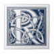 Une belle lettre céleste en relief décoratif illuminée de têtes de dragon gris sur un arrière - plan bleu foncé velouté.