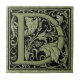 La première lettre de la lettre D de monogramme de calligraphie de typographie initiale décorative avec du charme de style dans le noir au-dessus de la doublure vintage de Livre vert d'avocat avec outre du ginkgo biloba blanc part.