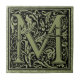 La première lettre de la lettre M de monogramme de calligraphie de typographie initiale décorative avec du charme de style dans le noir au-dessus de la doublure vintage de Livre vert d'avocat avec outre du ginkgo biloba blanc part.