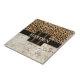 Des taches de léopard Brown et du marbre de couleur riche au fond. Le centre est laissé pour la personnalisation / personnalisation avec un nom de famille ou nom de famille, et monogramme initial. Design élégant et élégant avec un motif en peau de chat sauvage tendance qui a l'air vintage et antique.