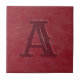 Ce carrelage en céramique rustique personnalisé est composé d'un arrière - plan texturé en cuir faux rouge avec une initiale monogrammée que vous pouvez personnaliser. Conçu par un artiste de renommée mondiale ©Tim Coffey.