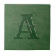 Ce carrelage en céramique rustique personnalisé est doté d'un arrière - plan texturé en cuir faux vert avec une initiale monogrammée que vous pouvez personnaliser. Conçu par un artiste de renommée mondiale ©Tim Coffey.