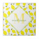L'inspiration pour ce design amusant est un motif de citrons d'aquarelle. Votre nom est en vert assorti et l'ombre monogramme est en jaune citron assorti. Elles sont en forme de diamant blanc, doubles bordées de teintes jaunes et vertes assorties, et disposées sur un joli arrière - plan motif citron.