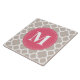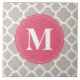Chic, tendance, girly, marocain treillis quatrefoil motif dans un lin gris et blanc avec un cadre étiquette en cercle géométrique rose avec un modèle Monogram.