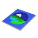 Carrelage en céramique, illustration circulaire d'une pleine lune qui s'élève au-dessus de collines vertes au bord d'un lac, avec un ciel étoilé bleu nuit