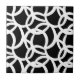 Un motif abstrait moderne avec des lignes blanches aux formes inégales courbant et traversant l'un l'autre en forme de sonnette sur arrière - plan noir.