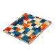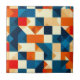 Motif géométrique abstraite et colorée, dans des tons vifs de bleu, d'orange et de crème, évoquant un style et un design artistiques modernes. La composition présente symétrie et équilibre esthétique, parfait pour diverses applications de conception.