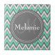motif tribal cool chic chic bleu, gris et blanc chevron zigzag avec plaque de nom gris pour votre monogramme personnalisé lettre initiale et nom. Grand cadeau pour les filles qui aiment les motifs géométriques et les cadeaux monogrammés.