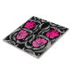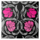Carreau de céramique dans un motif de textile de William Morris de cru des fleurs de mouron et du feuille stylisés - fleurs dans un gradient de profondément pour allumer le rose fuchsia, avec le gris argenté léger/feuille gris, sur un arrière - plan noir