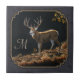 Mule deer buck on a sunlit ridge glowing in autumn colored light. Personalize with your own initials, texte ou monogram. Accented with a sophisticated charcoal gray patterned background