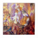 Carrelage en céramique avec la peinture de John Anster Fitzgerald (1819-1906) The Concert. Deux belles fées jouent des instruments de musique et chantent pour un concert. Des oiseaux colorés rouges et bleus suivent la performance. Un cadeau merveilleux pour les amateurs de contes de fées et les collectionneurs d'art victorien !