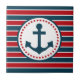 Design nautique avec décoration d'ancre en forme ronde avec étoiles sur rouge, bleu et blanc rayé arrière - plan