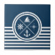 Design à thème nautique avec symboles nautiques (ancre, voilier, voilier, boussole) décoration sur arrière - plan rayé blanc et bleu marine.