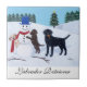 Carreau Noël du Labrador avec la peinture de Snowman