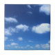 Des nuages blancs reposants dans un ciel bleu. Photo sur un carrelage en céramique. Décoratif ou utile comme poids de papier. Des pensées paisibles et positives et une proximité avec la nature. Diverses dimensions disponibles. Photo originale.