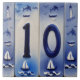 Dauphins, yachts de voile et phares de style bleu dessiné à la main, avec le numéro 10 fait de ce design hollandais authentique.