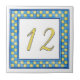 Un cadre checkered bleu et jaune tiré par la main autour d'un numéro de maison jaune sur un arrière - plan blanc avec les contours bleu-foncé.