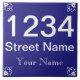 Faites votre propre numéro de maison. Ajoutez votre rue, et nom ou raison sociale. Style espagnol de tuile. Blanc sur le bleu.