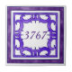 Un cadre violet dessiné à la main autour d'un numéro de maison avec des contours bleu foncé et un motif dans les coins.