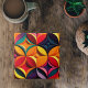 Un design géométrique qui présente des formes angulaires audacieuses et des motifs répétitifs disposés symétriquement. Ce type de motif Art Déco, très populaire dans les années 1960, se caractérise par l'utilisation de couleurs vives, de lignes pointues et de formes géométriques. Dans ce coque, la motif en carrelage est colorée, avec une palette de couleurs vives et audacieuses qui frappent visuellement.