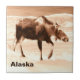 Image monochrome (marron) d'un orignal de vache marchant dans la neige. Les orignaux sont des résidents de nombreuses collectivités de l'Alaska qui vivent toute l'année. Ici à Anchorage il y a environ 1500 animaux, ainsi que des loups, des ours bruns et d'autres animaux sauvages.Ils sont généralement bien élevés. Ils traversent souvent les rues aux passages piétons après avoir attendu un signal de marche. D'une photo d'une orignale qui a traversé ma cour.