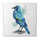 aquarelle traditionnelle d'un oiseau bleu et turquoise sur un carrelage en céramique.